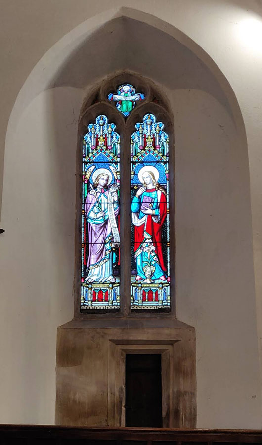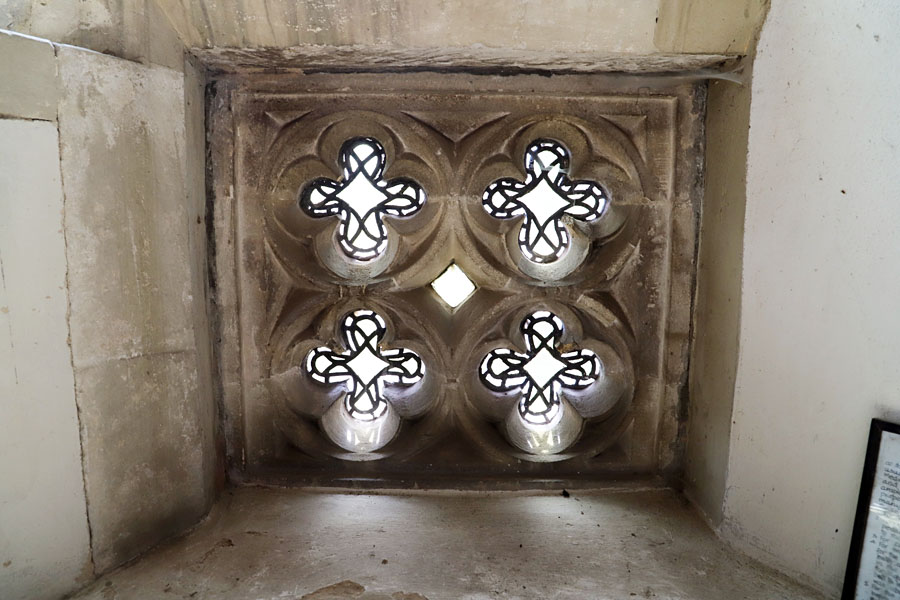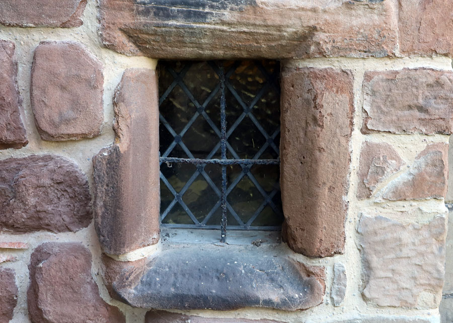A simple rectangular low side window installed below the original early c14 window.