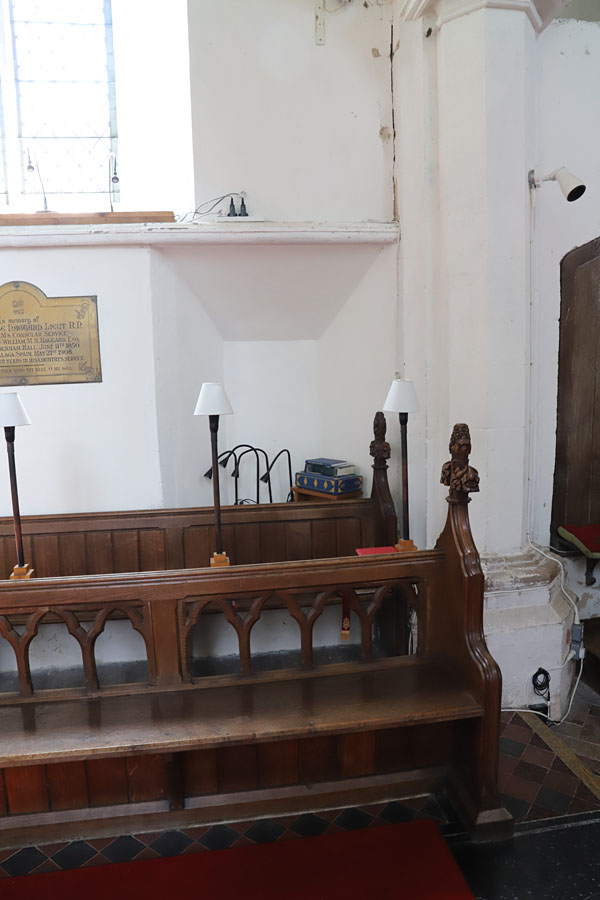 Internally the splay of the low side window (now blocked) abuts the respond of the chancel arch.
