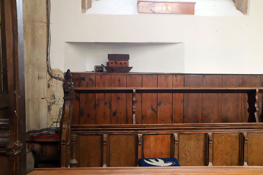 South low side window internal detail. The south-west angle of the chancel arch once had a squint from the south chapel which communicated with the sill of the low side window. It is now blocked up. It measured 11in wide by 2ft 3in high.1