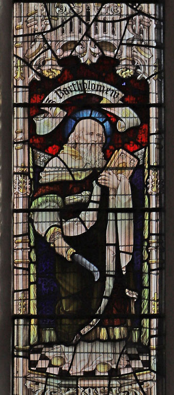 Each light has an individual dedication to the memories of members of a well known local family, Sarah Brown (d. 1869), Thomas Brown (d. 1896), and Earnest Brown (d. 1897). The window was given by sisters Flora Brown and Eliza Robins3. Flora is remembered in the window in the south aisle installed in 1913.